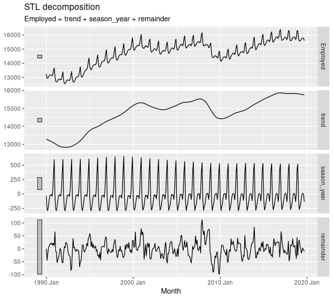 Decomposition statistically deconstructs a time series into several components: