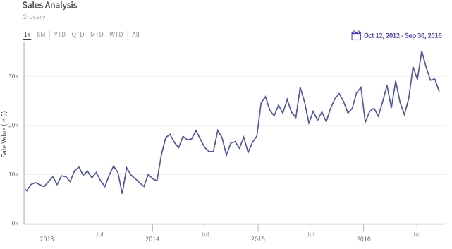 Example: Store sales volume over time.