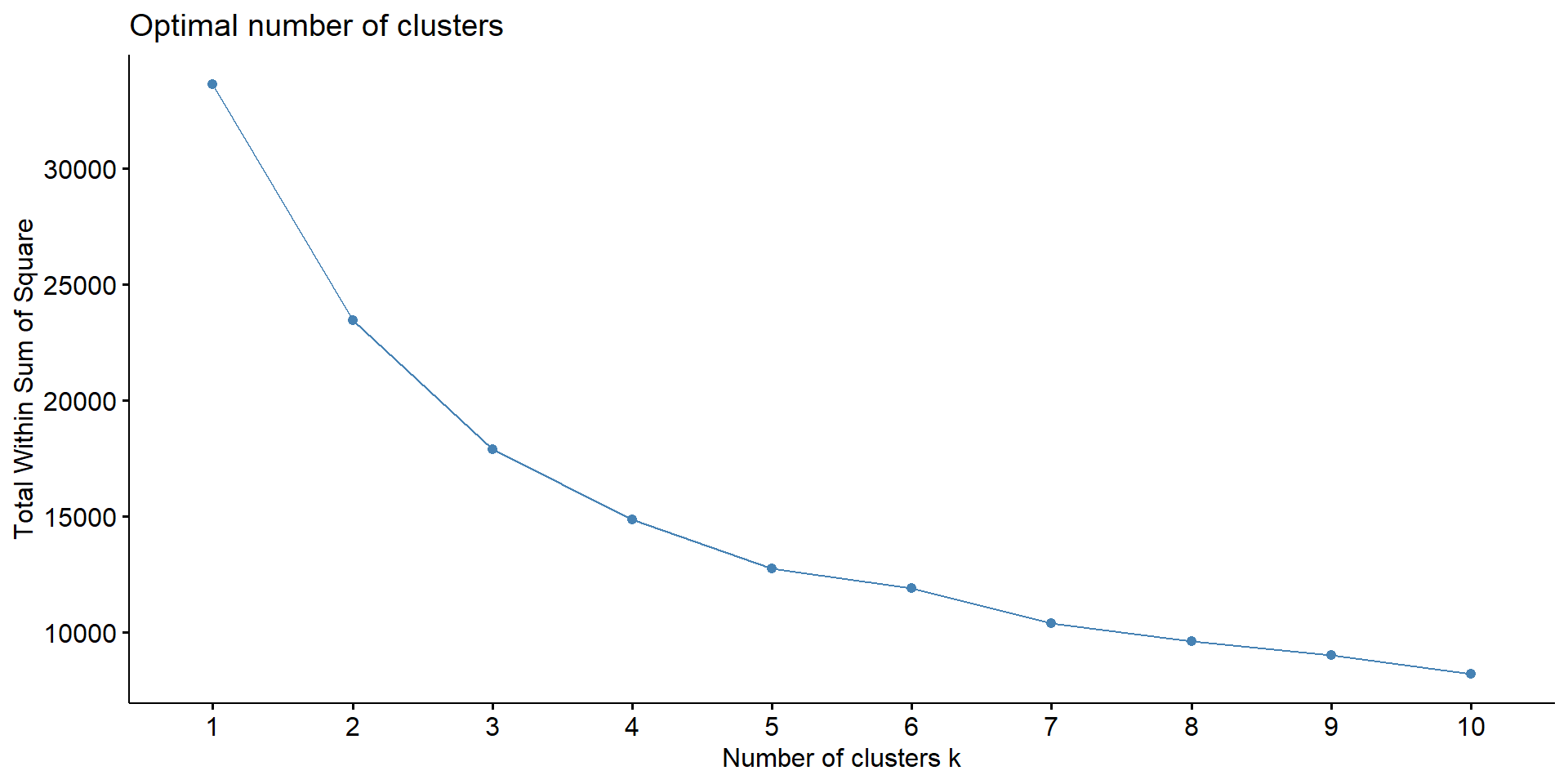 # Use two common methods to help choose the number of clusters.# Elbow Methodfviz_nbclust(cluster_scaled, kmeans, method ="wss")