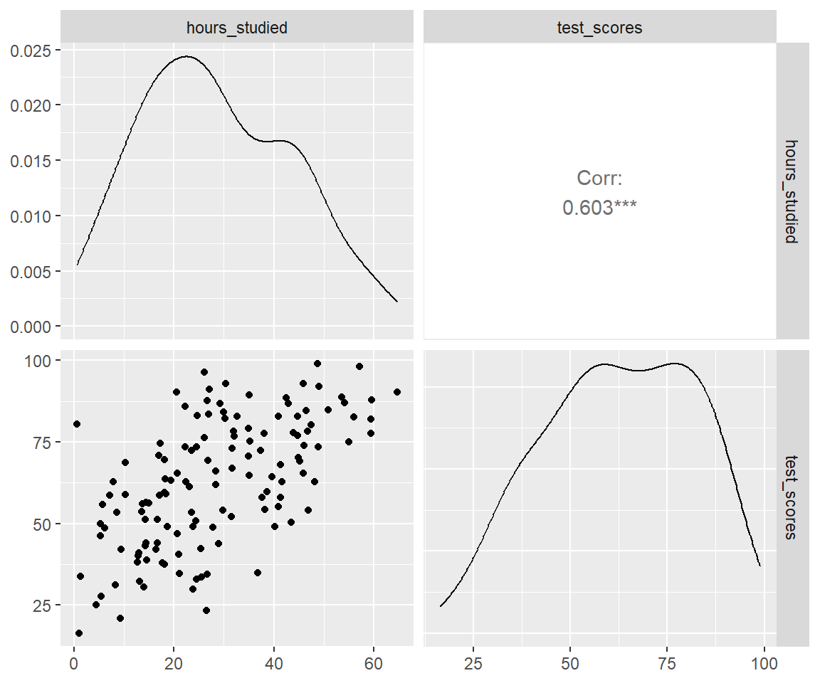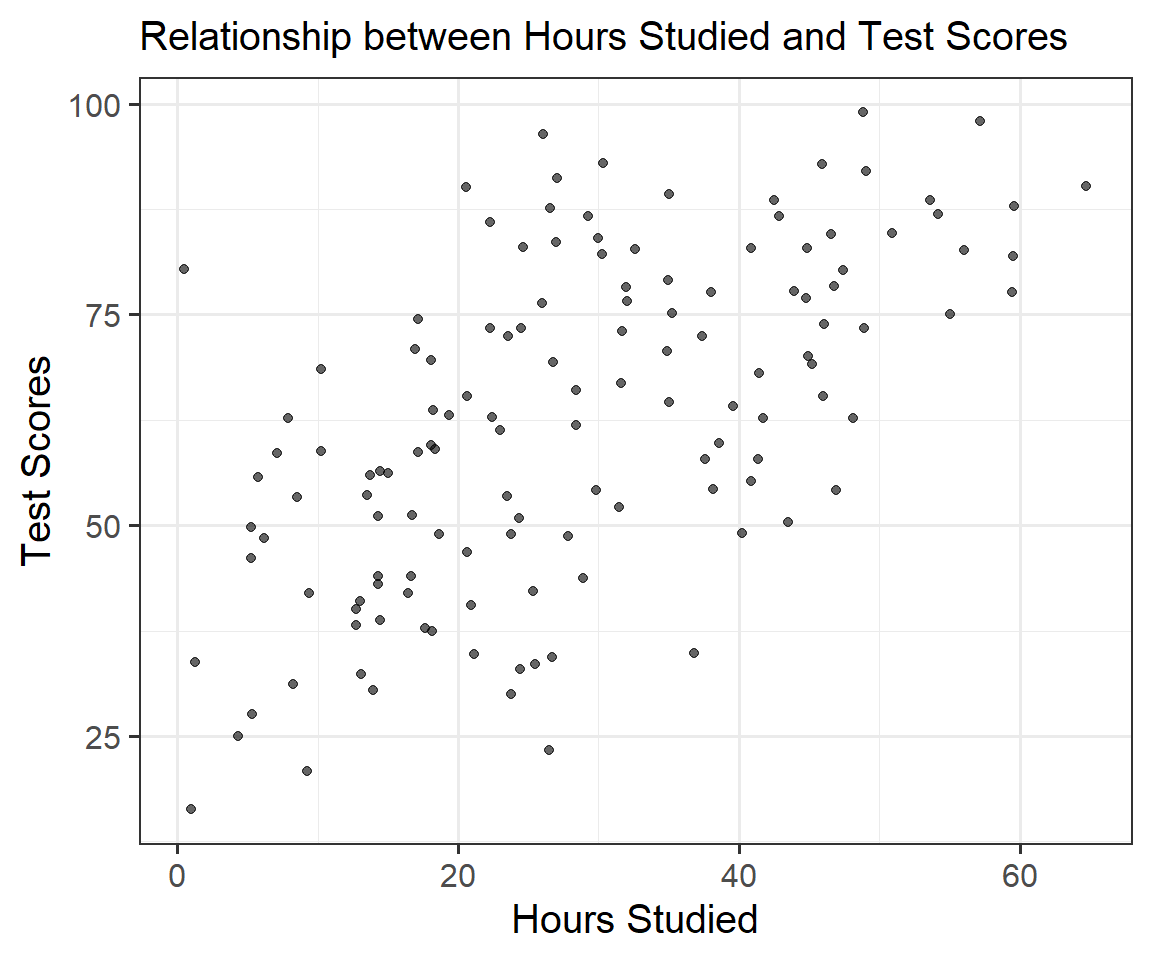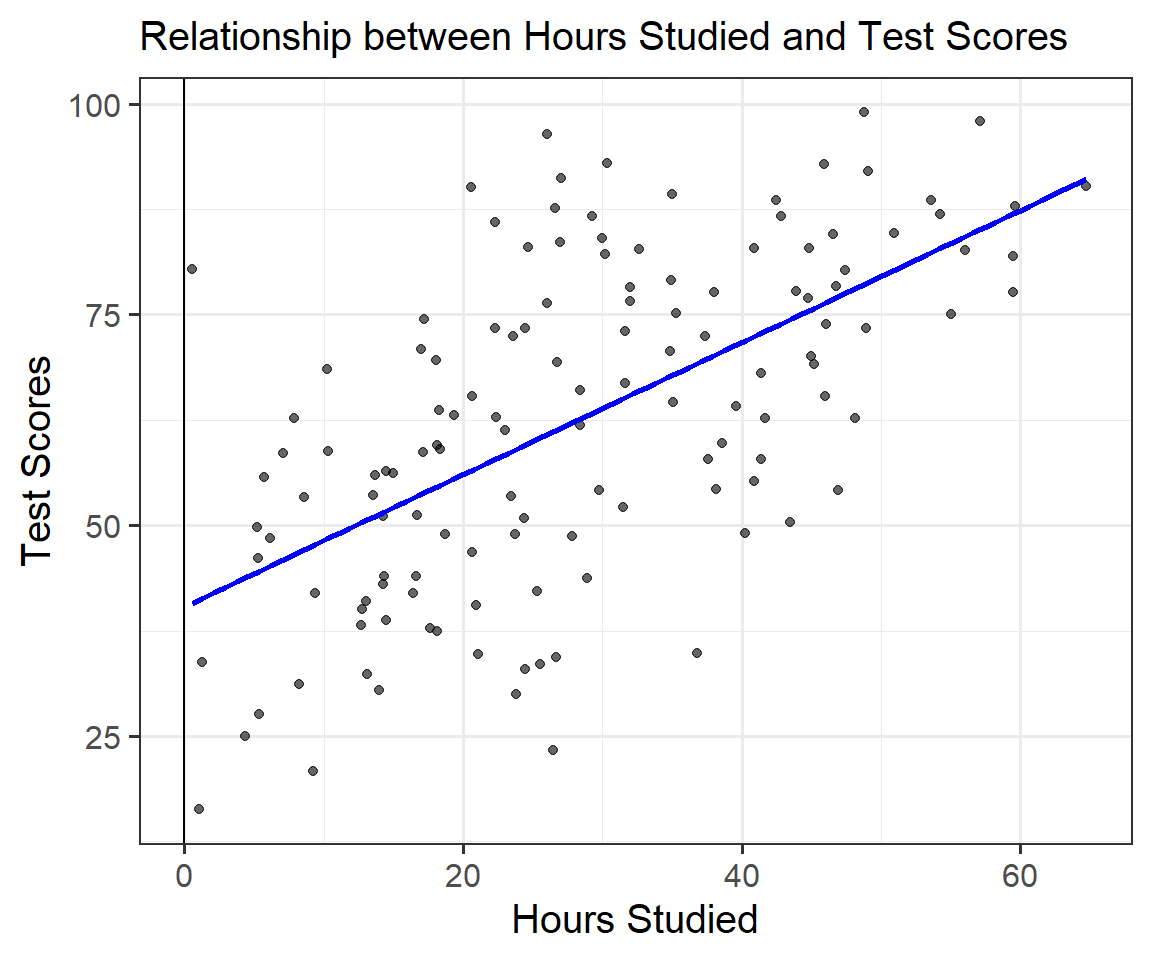 \[scores=40 + 0.8 * hours + \varepsilon ;~~ \varepsilon \sim N(0,1)\]